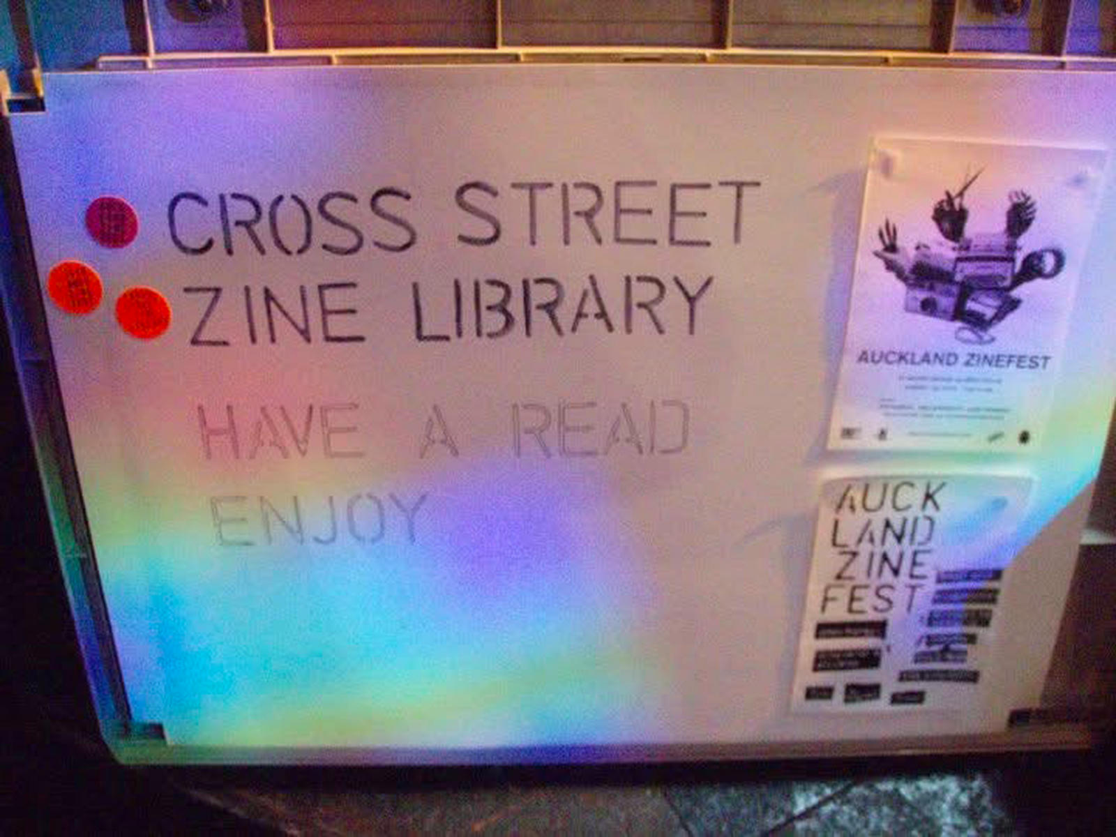 The programme was prolific, with over 140 public events ranging from exhibitions and live performances to workshops and publication launches. We also initiated and co-organised the popular Cross Street Carnival (2008–2009), Bang Bang Caravel variety nights, the inaugural Auckland Zinefest, and collaborated on projects with others in our community.