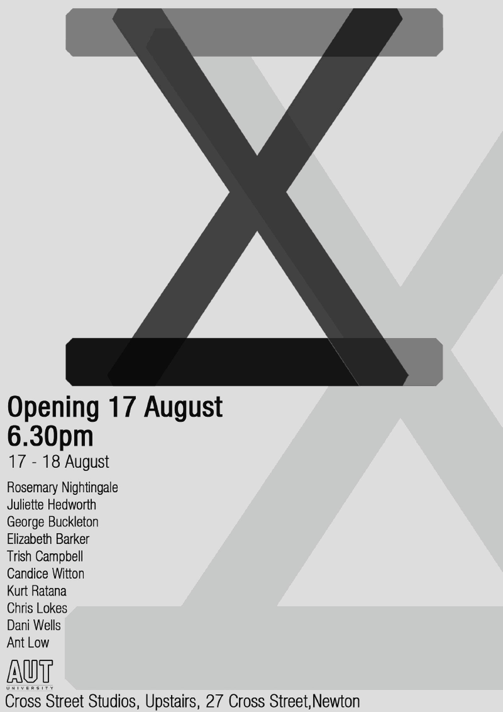 X 2 was the fourth of five exhibitions in a three-year partnership between Cross St Studios and AUT. Through this collaboration, students gained the unique opportunity to showcase their work in a public context, connecting with a wider arts community and gaining exposure free from the financial pressure of commercial galleries.