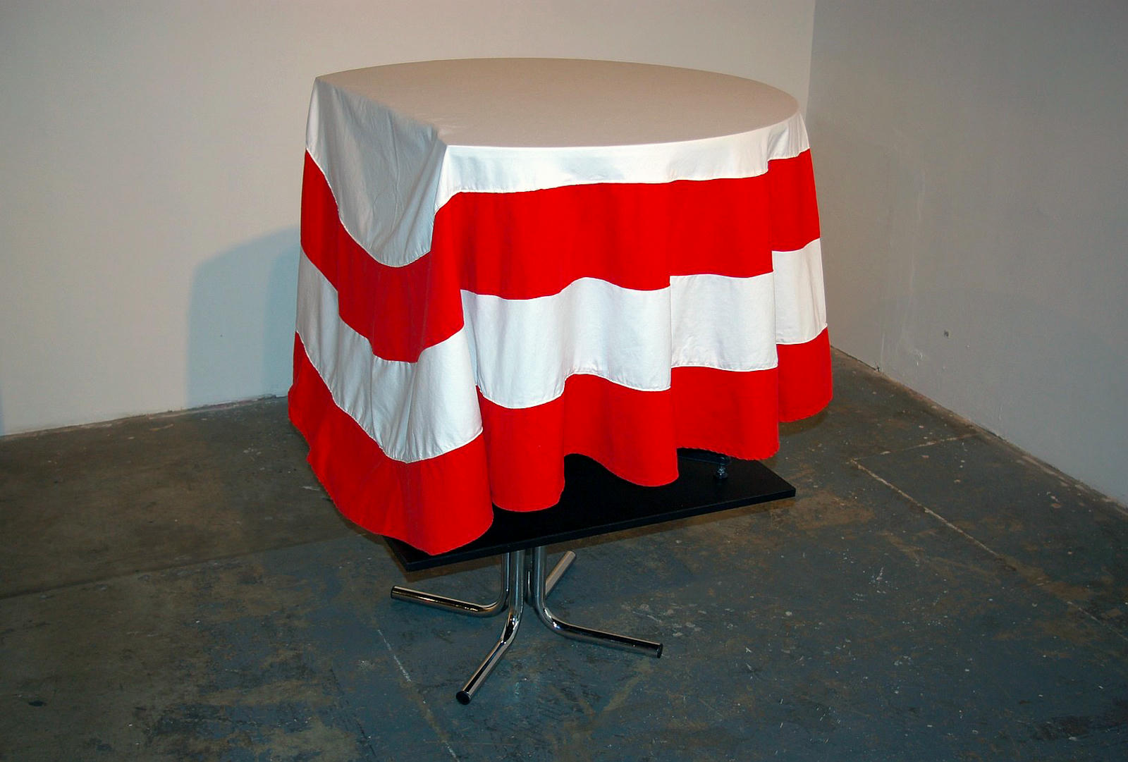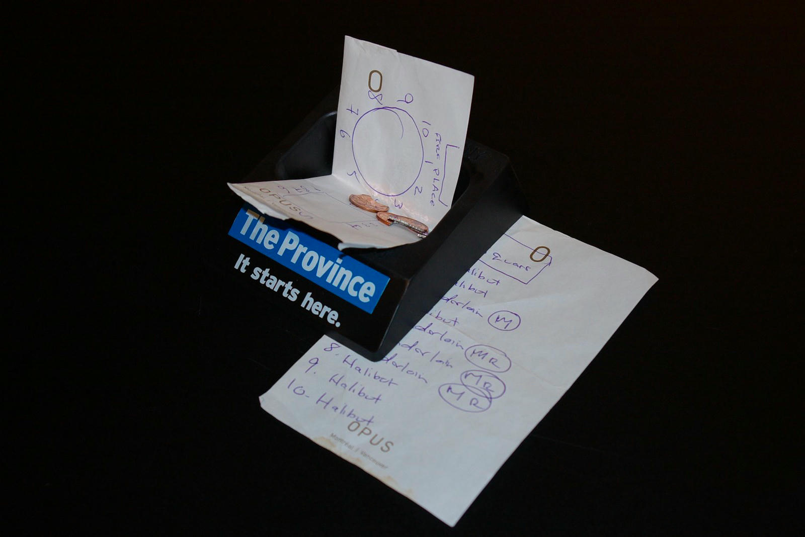 WELCOME was a one-night-only exhibition of new work by Daniel Munn that subtly explored themes of hospitality, labour and economic instability. Inspired by the ritual of preparing a table for new guests, Munn's work used everyday objects—from mint-error coins in a penny tray to a custom-made tablecloth—to create fictional glimpses into the lives of people working in the service industry.