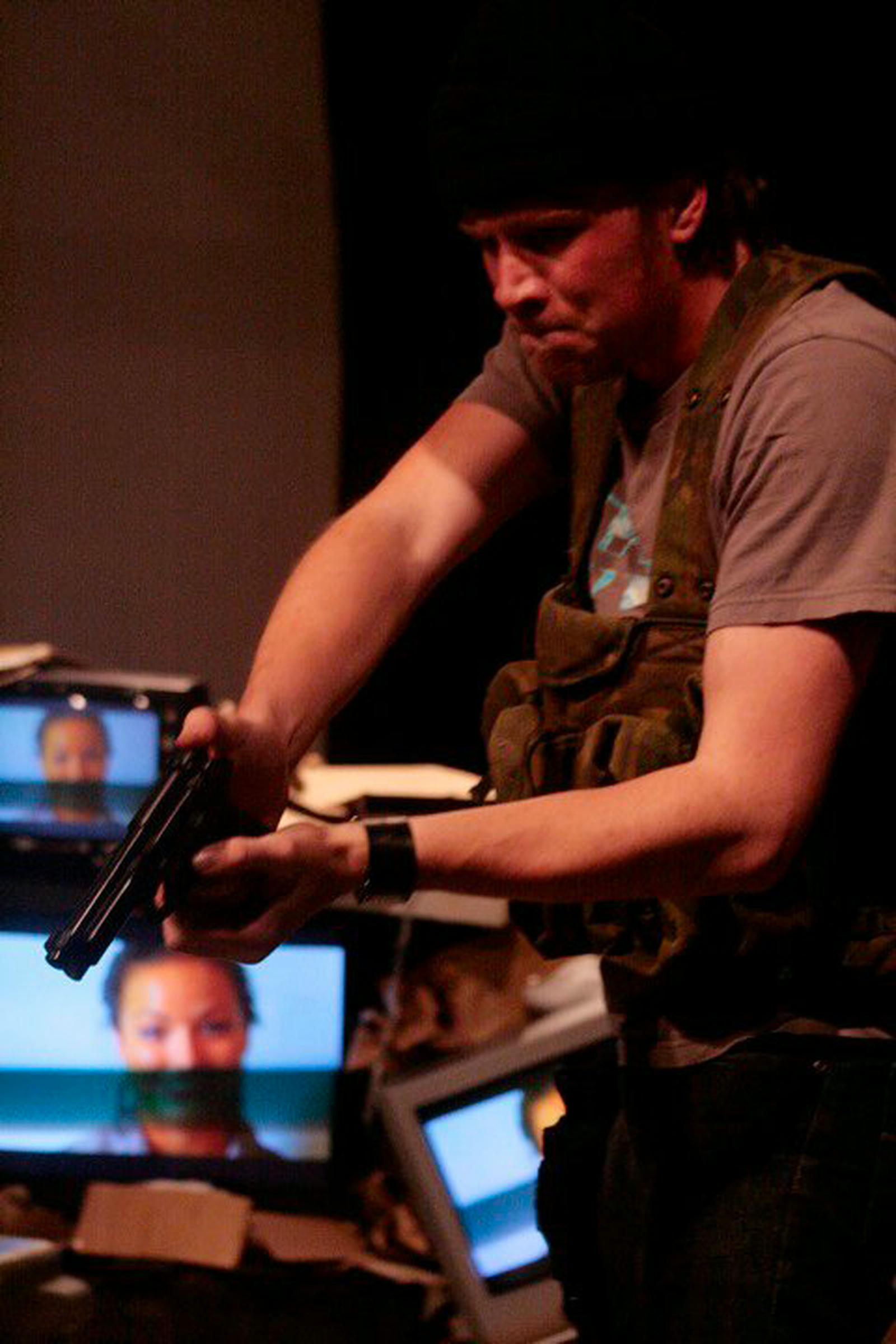 Presented by The Outfit Theatre Company in association with the Auckland Fringe Festival, Little White Men is an experimental theatrical work set in a dystopian near-future Aotearoa New Zealand. Written and directed by Joel Herbert, the show explores a world overrun by bureaucracy and a privatised police force, where the judicial system is replaced by simple, "tick the box" interviews. Blending multi-media with live action, Little White Men delivered dark, quirky humour and a witty pace; "a theatrical explosion off the stage."